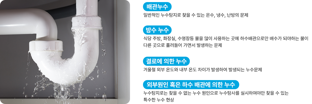 누수는 예고없이 찾아오는 불청객입니다.